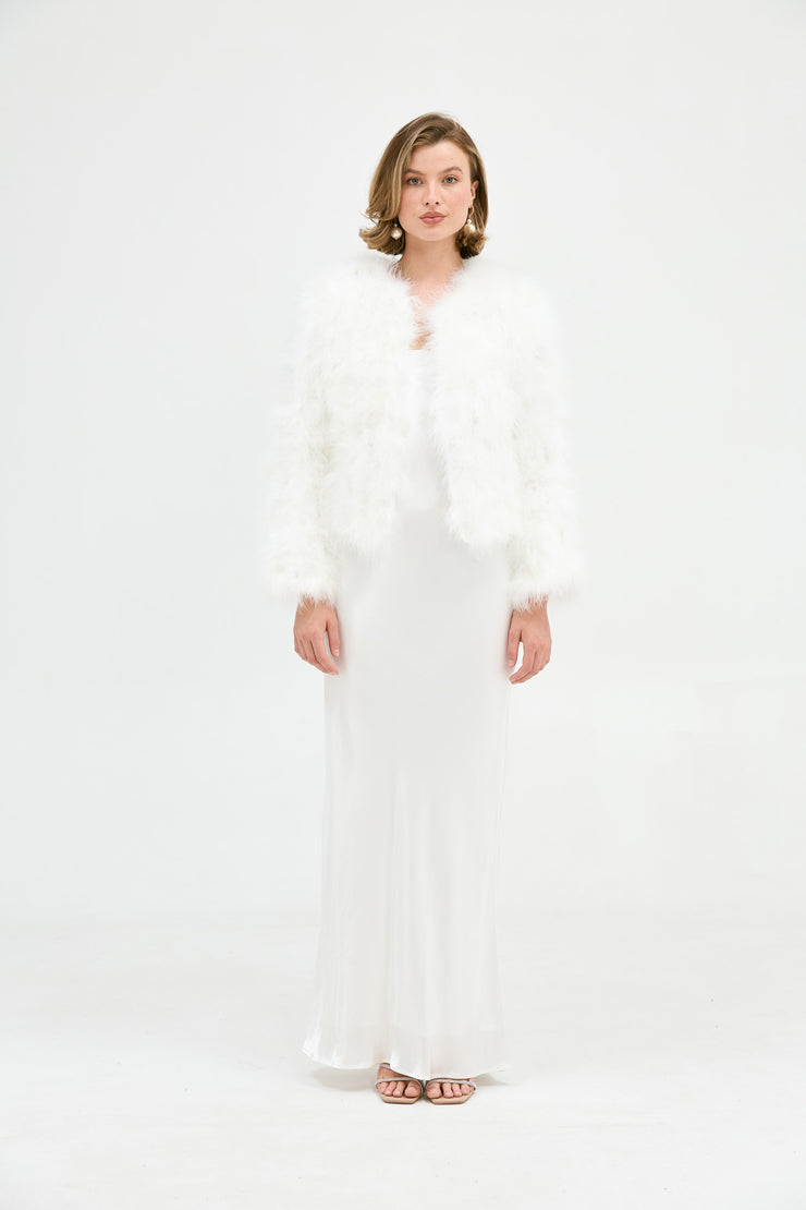 - Outer 100% Marabou Feather, Inner 100% Satin Polyester