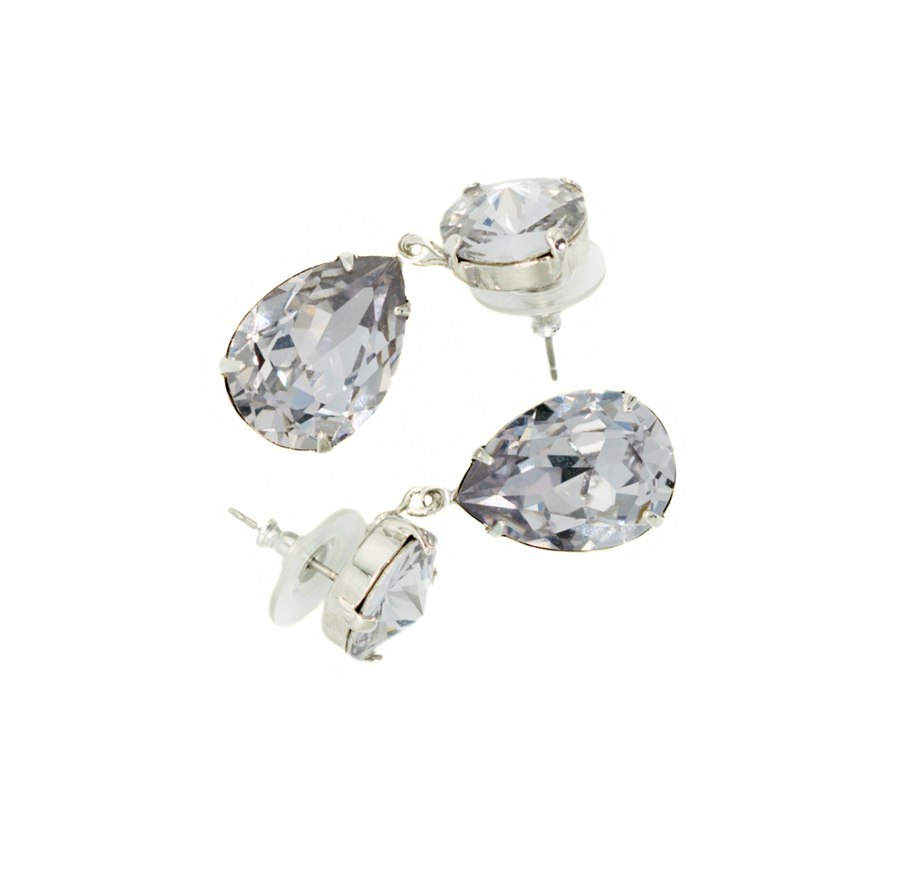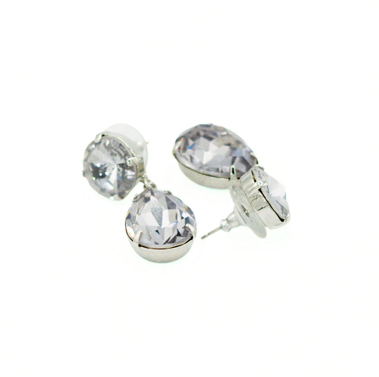 Dress up your wardrobe with these crystal earrings. Featuring a round crystal with a teardrop dangle.