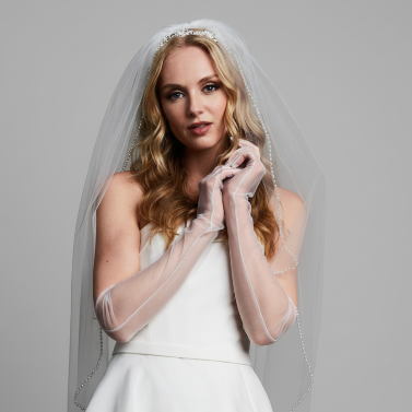 Step into elegance with our Giselle Tulle gloves. Made from delicate tulle, these elbow length gloves add sophistication to any outfit. Perfect for weddings, proms, or any special occasion.