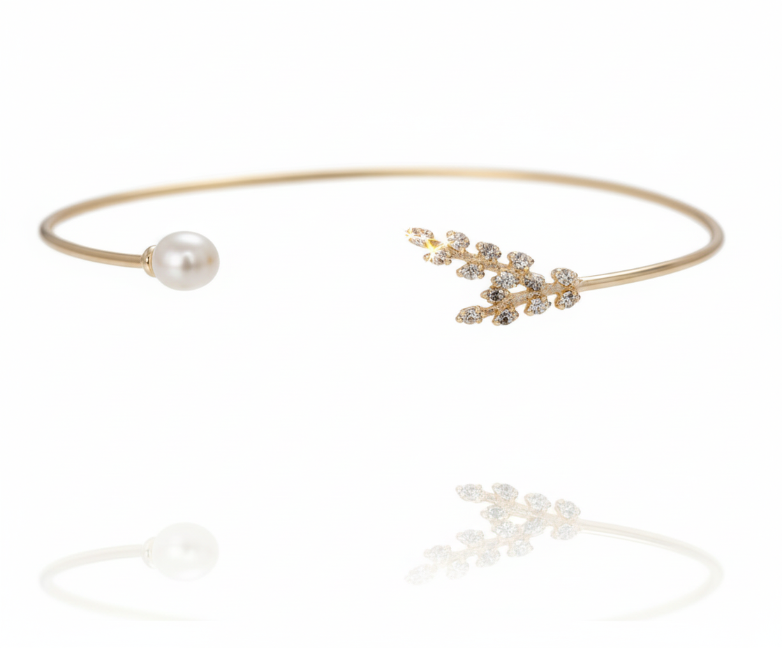 A timeless and luxurious accessory that adds a touch of sophistication to your bridal attire. This elegant bracelet features a lustrous freshwater pearl complemented by sparkling zirconia stones and moonstone, creating a harmonious blend of natural beauty and dazzling brilliance. Perfect for brides who appreciate classic elegance with a hint of sparkle
