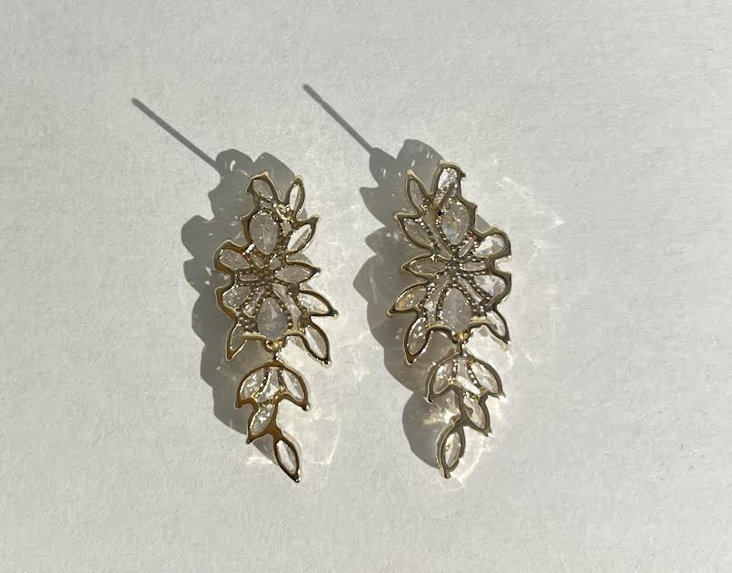 Leaf Shape Crystal Earrings